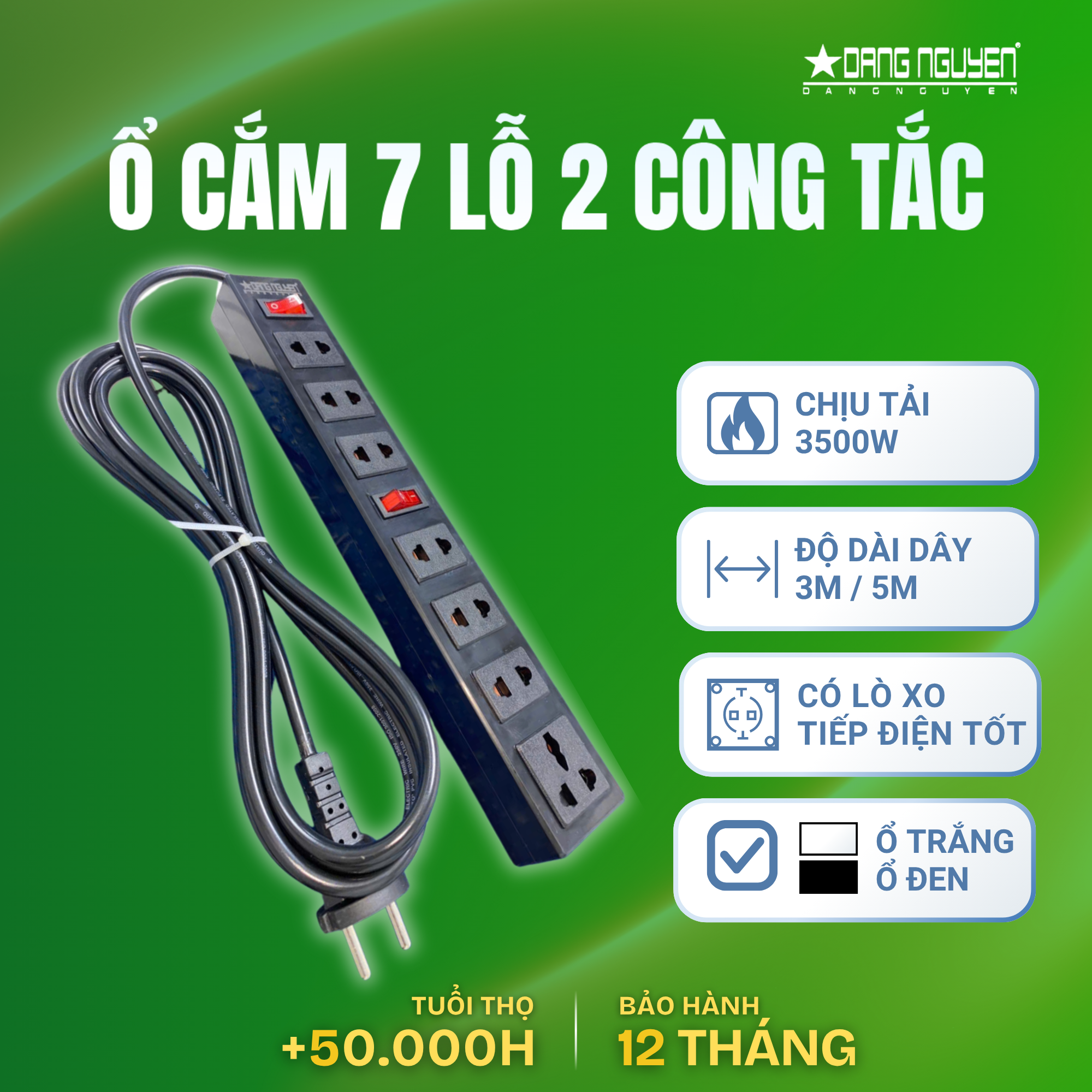 Ổ cắm điện 7 lỗ 2 công tắc: Lý tưởng cho xưởng sản xuất, công trường, các thiết bị điện chuyên dụng.