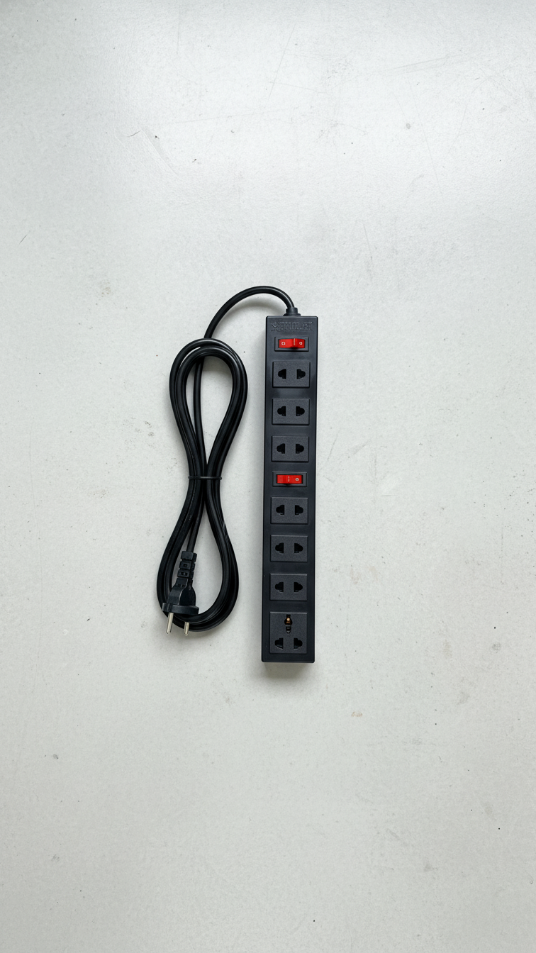 Ổ Cắm Điện 7 Lỗ 2 Công Tắc - Đen